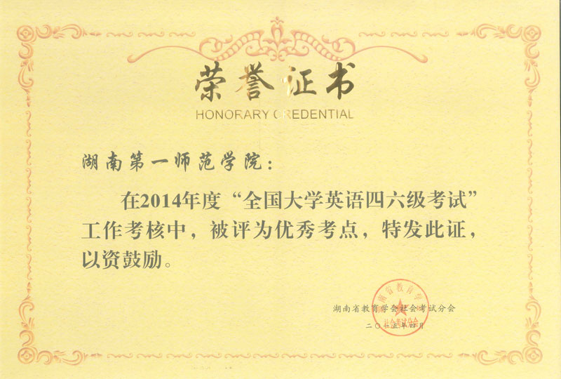 近日,湖南省教育考试院下发文件《关于表彰2014年度社会考试先进单位和先进工作者的通报》(湘教社考分会通[2015]3号),对全省2014年度社会考试先进单位和先进工作者予以表彰。我校被评为“全国大学英语四六级考试”优秀考点。