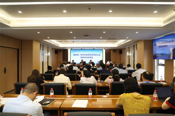 胡穗代表学校作表态发言。他代表学校对专家组的辛勤工作和精心指导致以诚挚的谢意。他表示,专家组充分肯定了我校教师教育取得的成绩,专家的高度评价既是厚爱也是鞭策,我们会将这些鼓励、鞭策转化为推动我校教师教育发展的动力。一是坚决以认证促整改,落实落细专家反馈意见。师范类专业认证整改工作是专业认证的“后半篇文章”,学校全盘接受专家组提出的反馈意见,并将立即启动整改工作,认真梳理专家意见,深入剖析问题根源,制定整改方案和工作台账,列出问题清单、任务清单、责任清单和时间进度表,以“钉钉子”的精神,全面落实整改工作。同时,也将进一步梳理我校已通过认证的师范专业存在的共性问题,将认证整改工作与专业建设、新一轮本科教育教学审核评估、学校教育教学改革 30 条意见结合起来,整体谋划,一体推进。二是坚决以认证促建设,有力有效抓好专业内涵建设。学校将把本次师范专业认证工作中反映出的问题和各位专家提出的建议作为工作重点,进一步加强师范专业内涵建设,不断深化教育教学改革。优化更新教学各环节质量标准,持续完善专业人才培养方案;深挖红色育人资源,强化师范生师德养成教育;完善教师分类评价标准,加强教师教育师资队伍建设;健全培养目标、毕业要求和课程目标三级达成评价机制,确保五个达成度见行见效;完善教学质量保障与运行机制,全面推进一流本科专业建设和一流本科课程建设。三是坚决以认证促发展,做优做特师范教育。学校将以此次师范类专业认证为契机,以专家意见和建议为指导,进一步聚焦师范教育主责主业,牢固树立“学生中心、产出导向、持续改进”的理念,进一步完善卓越教师人才培养改革方案,全面推进师范教育的“学术性”与“师范性”、“传承性”与“创新性”、“开放性”与“协同性”的融合,切实提高人才培养质量,助力乡村振兴,更好地服务并引领湖南基础教育改革发展。