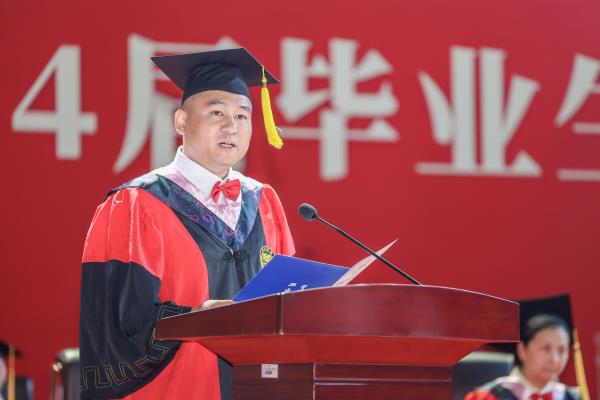 体育学院李梦龙教授作为教师代表发言;教育学院2024届毕业生胡坤作为优秀毕业生代表发言。