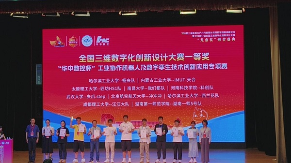 8月20日,第17届全国三维数字化创新设计大赛“华中数控杯”工业协作机器人及数字孪生技术创新应用专项赛全国总决赛在北京航空航天大学举行。我校智能制造学院学生获国家级一等奖及三等奖各一项,获得我校在该项赛事中的历史最佳成绩。