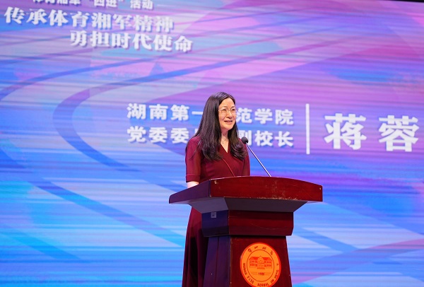 罗跃龙在致辞中指出,此次启动仪式暨首站活动将湖南优秀运动员的拼搏精神带到了享有“千年学府,百年师范”美誉的一师,在青年毛泽东曾求学并发表《体育之研究》的地方再次点燃了体育精神的火种。罗跃龙进一步阐述了体育湘军精神所蕴含的深刻内涵,“体育湘军精神,集中体现了湖南人民吃得苦、耐得烦、霸得蛮的精神属性,敢为人先、坚韧执著的文化品质,勇立潮头、奋发图强的时代精神。”他希望通过弘扬体育湘军精神,激励同学们树立起远大目标、筑牢理想信念根基,立志做有理想、敢担当、能吃苦、肯奋斗的新时代好青年,在强国建设、民族复兴新征程上书写壮丽青春篇章。