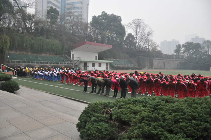 仪式上,彭小奇、肖湘愚、杨兰英代表师生向毛泽东铜像敬献了花篮,全体在场人员怀着无比崇敬的心情,集体向伟人三鞠躬,深切缅怀毛泽东同志的丰功伟绩。我校城南书院学生代表和一附小学生集体朗诵了主席的诗词《沁园春·长沙》,仪式在全场合唱校歌中结束。