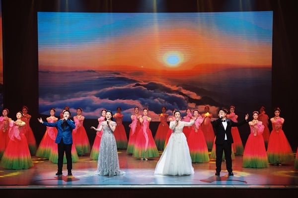 在第三篇章,体育舞蹈啦啦操表演《最好的舞台》充分展现一师学子的青春与活力。流行乐团演绎的《我爱你中国》让热血随着旋律澎湃,共证青春与祖国的炽热之约,表达了青年人对祖国的热爱。群舞民族舞《福舞迎春》,展现了各族儿女的民族风采和深厚情谊。最后,歌伴舞《春风十万里》以优美的歌声和动人的舞蹈,表达了一师青年们奋进新时代的信心信念。