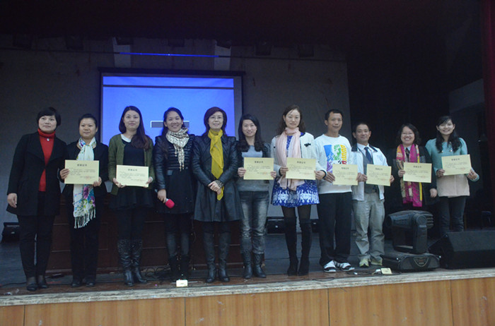 阳敏等10名学员代表精心准备了主题鲜明、特色不一的汇报材料,他们通过说国培、诵国培、唱国培等多种形式与大家分享了20天来在基地学校实践研修中磨课的艰辛、上课的精彩、研讨的愉快以及顿悟的喜悦。大家在轻松、愉悦的氛围中,感悟研修,共话成长,校国培办黄朝霞副主任对汇报会做了精辟的点评与总结,最后,曾小玲主任为米来等学员颁发了汇报会获奖证书。