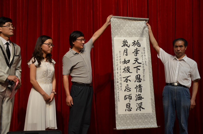 典礼上,文学与新闻传播学院党总支书记林光明发表致辞,全面回顾和总结了2014届毕业生所取得的成绩,表达对毕业生深深的不舍和美好的期望。随后,学院领导为分别考取香港理工大学、浙江大学等高等学府研究硕士生的同学颁发了学院第三届考研奖。张俨老师、胡秀银同学分别代表辅导员和毕业生作了发言。
