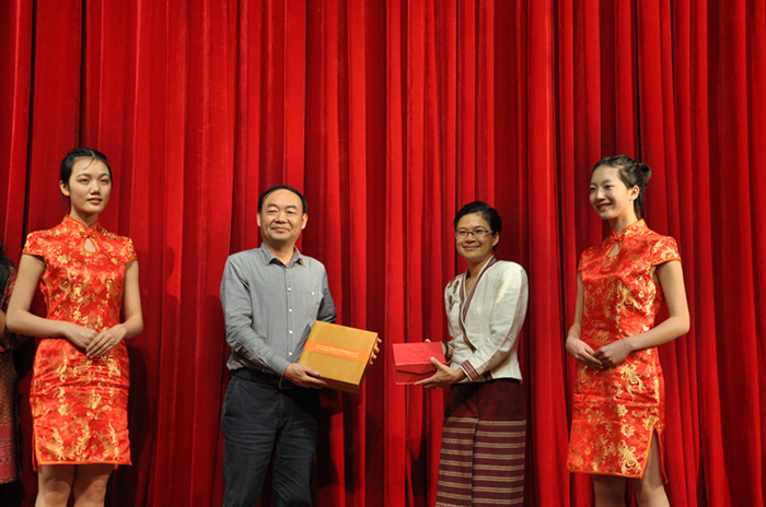 在我校副校长刘鸿翔与苏兰拉里理工大学副校长Sirinthorn互相交换礼物后,晚会第二篇章开启。