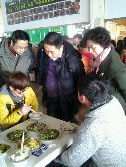 为全面贯彻执行党的群众路线,切实督促学生食堂搞好餐饮服务管理工作,2月19日中午,校长肖湘愚,副校长刘宇、杨兰英到东方红校区学生食堂检查调研饭菜质量、价格等情况。