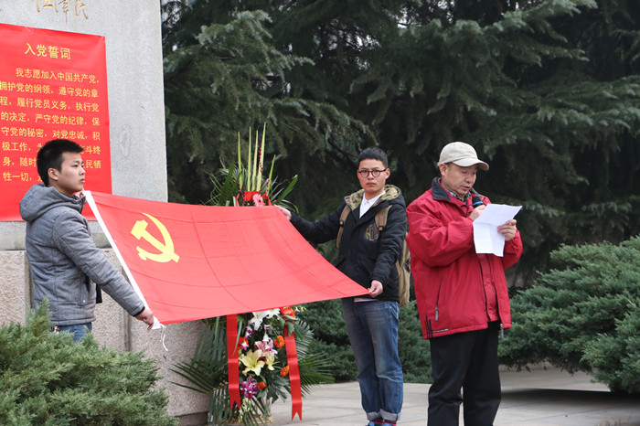 美术系师生首先参加了学校举行的纪念毛泽东诞辰120周年敬献花篮仪式,缅怀伟人的丰功伟绩。之后,慷慨激昂的《国际歌》响起,苏美华宣读了本学期新发展的预备党员名单。在青年毛泽东铜像前,新老党员们都举起右手握拳齐肩,随领誓人逐句跟读——“我志愿加入中国共产党,拥护党的纲领,遵守党的章程,履行党员义务,执行党的决定,严守党的纪律,保守党的秘密,对党忠诚,积极工作,为共产主义奋斗终身,随时准备为党和人民牺牲一切,永不叛党。”高亢洪亮、坚定不移的誓言回荡在青年毛泽东铜像广场上空,也激荡在每一个党员的心里。