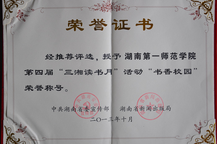 近日,中共湖南省委宣传部、湖南省新闻出版局联合下文,对第四届“三湘读书月”活动先进典型进行表彰,我校被评为全省十佳“书香校园”。