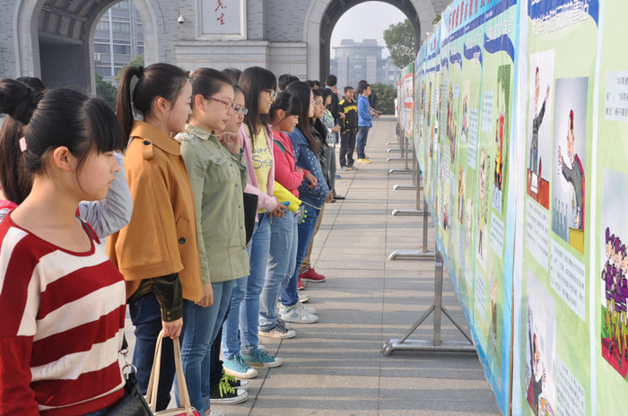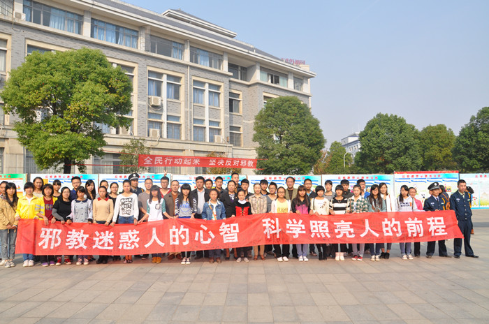 根据上级有关文件精神,10月26日上午,我校在东方红校区升旗广场举行了反邪教警示宣传教育图片展暨大型签名活动。校领导阳柏苏、刘志敏、杨兰英,相关部门负责人、各系部党总支副书记、学工办主任及2013级新同学近3000人参加了签名活动并认真观看了图片展。
