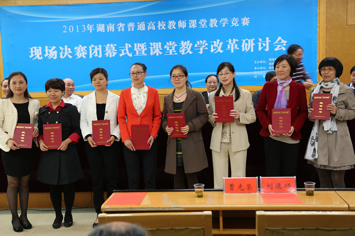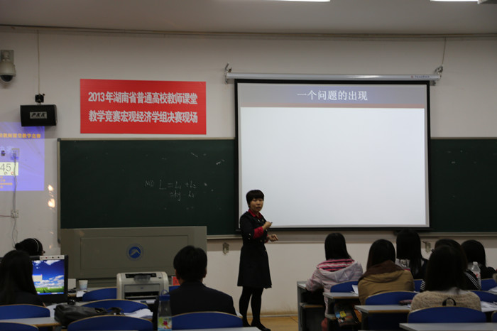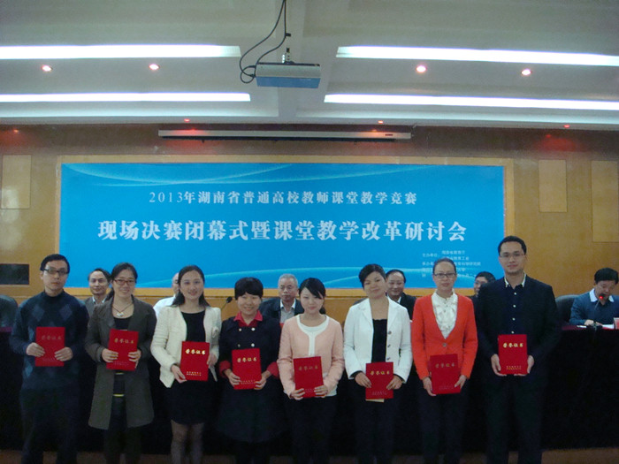 10月26日,由湖南省教育厅和湖南省教育工会主办的2013年湖南省普通高校教师课堂教学竞赛现场决赛暨课堂教学改革研讨会在湖南科技大学举行。我校经济管理系覃建芹老师在当日的决赛中表现优异,喜获宏观经济学组决赛一等奖,并同时获得由湖南省教育工会颁发的教育系统“芙蓉百岗明星”荣誉称号。