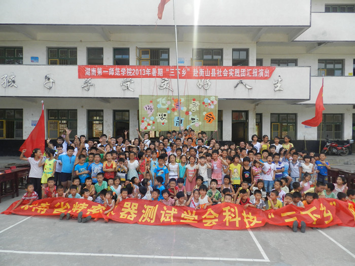 外语系“三下乡”支教队深入基层进行调研、座谈,支教队员还深入田间地头,帮助村民收割水稻,做起农活。同时,在当地有关部门的支持与配合下,对年龄在8到13岁的留守儿童进行了英语、普通话、书法、写作、乐器、剪纸、体育等内容的授课,并举办了“情系宁乡·筑梦龙潭“为主题的文艺汇演,为大山里的孩子们送上了一场文娱大餐。数学系赴衡山县江东乡江东中心完小支教队,通过教学、座谈、家庭走访、游戏互动等方式,关爱农民工子女,用爱心呵护140余名学生成长。守望支教社郴州支教团以“放飞梦想,与爱同行”为主题开展了一系列的支教和敬老义演等活动,为老人和孩子们送去关爱。家教协会实践队以青春的名义起誓,将“逐梦”化为动力,在郴州市苏仙区大奎上乡中心小学为山区的孩子们带去新的教学理念和学习方法,也为孩子们带去梦想和希望。