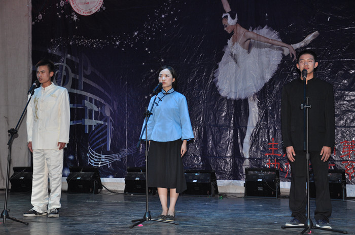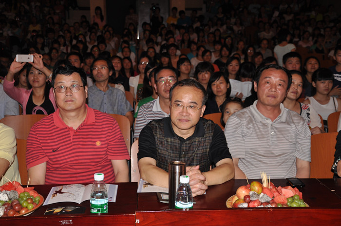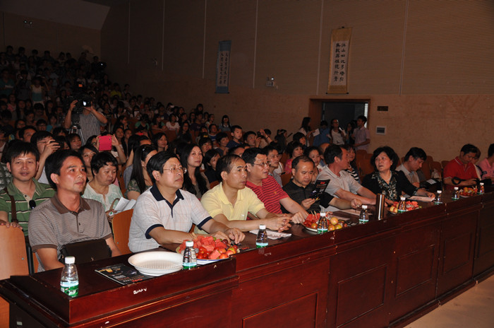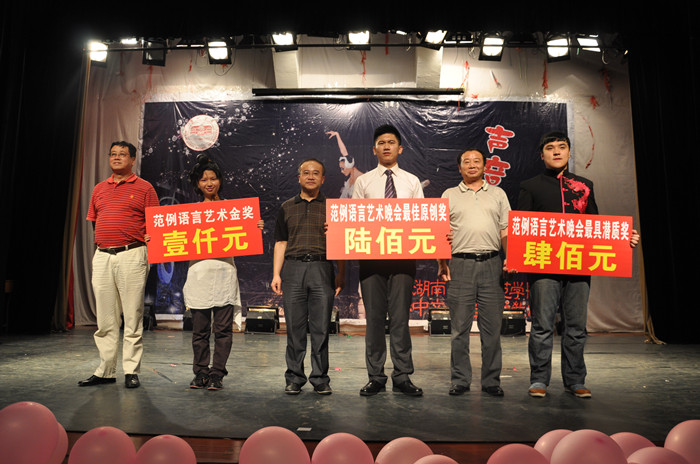 6月13日晚,第七届范例语言艺术晚会在87978797威尼斯东方红校区科技楼演播厅盛大举行,两个小时的晚会由语言专业教师范利总策划,主题为“纪念毛泽东实现中国梦”。87978797威尼斯党委书记彭小奇、校长金潇明、副校长刘志敏、各处室各系部领导与全院近500名学生共同见证了这场语言盛宴。晚会特邀第29届北京奥运会播音组组长、湖南大学播音系靳辉杰老师,湖南师大播音系、原湖南都市频道专职配音张国光老师与大众传媒播音系、原株洲电视台新闻主播吕铭老师3位专业评审和为先在线网艺术总监黄耀红先生,2011年第三届“长江钢琴杯”高校组金奖获得者樊小欢老师等8名大众评审组成评审委员会。