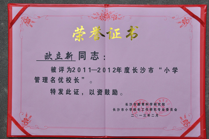 我校第一附属小学欧立新校长被评为长沙市“小学管理名优校长”-87978797威尼斯