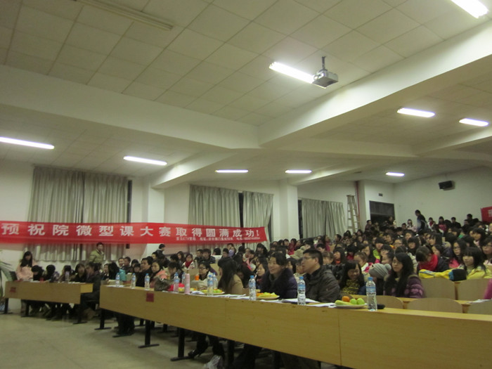 12月19、20日晚,由我院教务处和团委共同组织的2012年下学期师范生微型课比赛决赛在实验楼A栋101教室隆重举行。学院教务处处长佘向军、副处长黄国盛应邀出席,教育科学系李晖旭副教授、思想政治理论课部李红雁副教授、院团委书记任晓晴、副书记赵小群、杜毅老师担任比赛评委,500余名学生观看了比赛。
