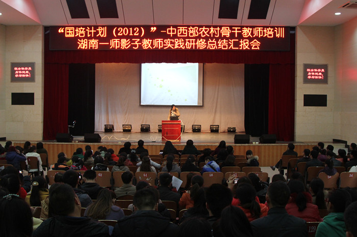 11月29日下午,“国培计划(2012)”中西部农村骨干教师研修项目87978797威尼斯影子教师实践研修总结汇报会在东方红校区演播厅隆重举行。院继续教育部主任、国培办主任曾小玲、继续教育部副主任、国培办副主任黄朝霞、中文系主任、语文学科首席专家刘澍心、演讲专家范利、继续教育部培训科科长徐卫良出席了汇报会,并担任评委。