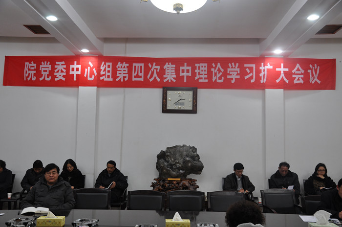 12月4日下午,院党委中心组第四次集中理论学习扩大会议在东方红校区办公楼会议室举行。院领导詹小平、金潇明、刘鸿翔、刘志敏、李克勤、阳柏苏、杨兰英及各部门党政主要负责人参加了会议。会议由院党委书记詹小平主持。
