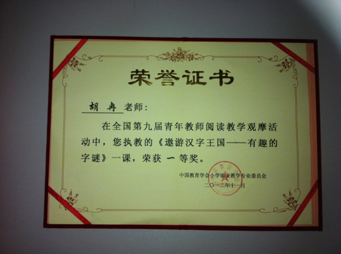 2012年11月14—16日,全国第九届青年教师阅读教学观摩活动在福建省厦门市隆重举行。此次活动由中国教育学会小学语文教学专业委员会举办,来自全国各地的32位老师以“把握课标理念精髓,学习语言文字运用”为宗旨,演绎了32堂不同风格的阅读教学课。我院二附小胡冉老师执教的语文综合性学习课《遨游汉字王国——有趣的字谜》荣获观摩竞赛一等奖。