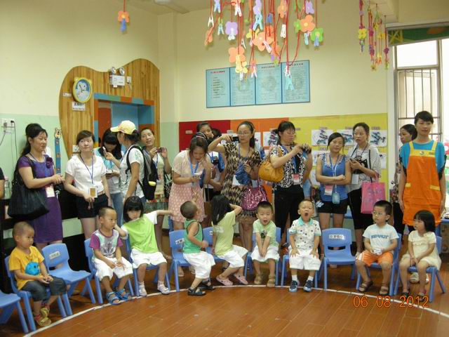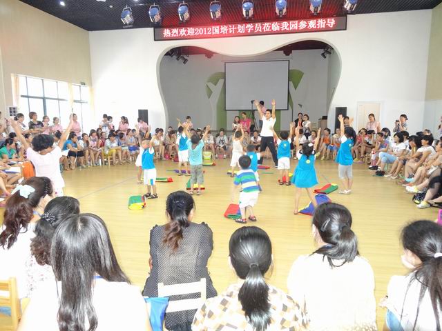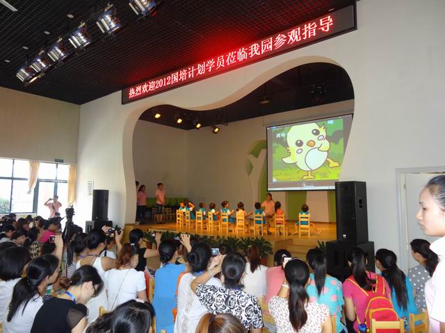 8月6日上午,“国培计划(2012)”87978797威尼斯农村幼儿园教师培训班 160名学员在学院专家的带领下,来到长沙市明德麓谷幼儿园进行教学观摩。学员们认真观摩了谭娜、吕奕、邹勇三位幼儿园老师分别上的《小小鸡蛋把门开》、《毛毛虫与蝴蝶》、《袋鼠宝宝》语言、音乐、体育活动课。三位授课老师采用生活化、游戏化的教学方法,在孩子们快乐而投入的学习与游戏中,学员们也情不自禁的走进他们,和他们一起做游戏。观摩课结束后,专家与学员们分小组进行了品课活动。
