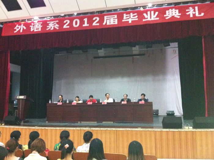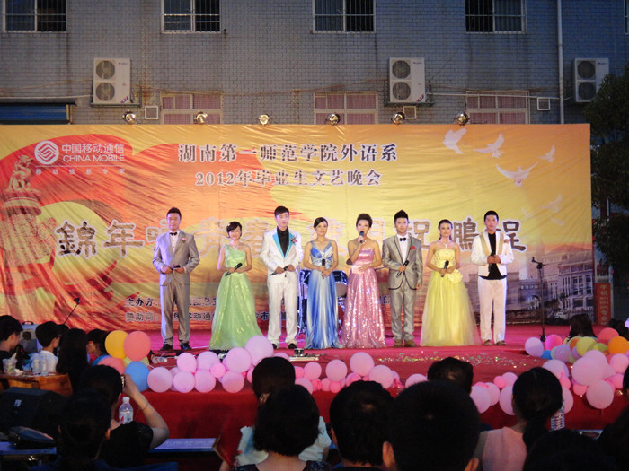 6月19日晚,“锦年咏青春 岁月祝鹏程”外语系欢送2012届毕业生文艺晚会在东方红校区嘉泰广场隆重举行。院学生处何文处长,团委书记任晓晴、副书记罗祥云,系主任陈友良、党总支书记赵花云、副主任邓于祁、副书记欧阳伶俐等领导老师应邀出席了本次晚会,来自外语系全体学生、院学生干部及其他系部学生干部观看了整场晚会。