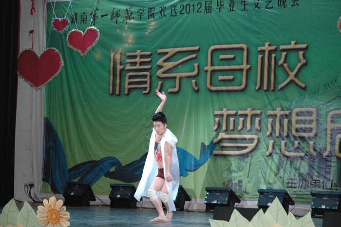 整场晚会分为三个篇章。第一篇章为“师生情深,桃李芬芳”。首先,来自各系部的9名毕业生代表陆续上台,分别表达了对母校、对老师的依依惜别之情,他们感恩于母校、老师的栽培,即将以自信、从容的姿态奔赴祖国的大江南北。随后,一个个精彩的节目依次上演:6位主持人的诗词朗诵《一师一生情》用朴实的语言述说了“师恩难忘”主题;青年教职工团总支选送的歌曲《远方有你》唱响了全院教师对毕业生的深情期盼;教科系罗健同学表演的独舞《开放》充分展现了当代大学生不屈服、不放弃的拼搏精神。