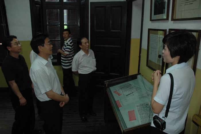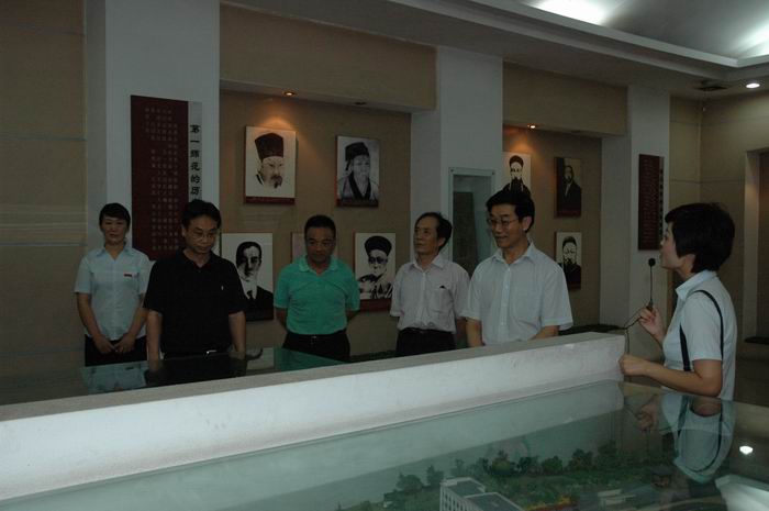 崔海容一行在讲解员的带领下,参观了城南书院校区大礼堂、八班教室、八班寝室、水井、阅报室等景点和纪念馆所有展厅,并详细听取了毛泽东主席当年在一师求学的经历、一师发展的历史沿革与现状的讲解。