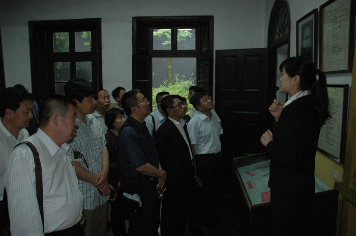 考察团一行在讲解员的带领下参观了我院城南书院校区大礼堂、八班教室、八班寝室、水井、阅报室、青年毛泽东纪念馆各展厅,并不时询问我院的历史沿革、办学规模等情况。各位客人一致认为:第一师范城南书院校区环境优雅,名人辈出,富有深厚的历史文化底蕴,是培养人才的好地方。
