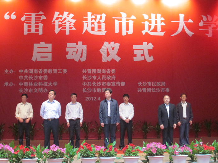 仪式上,长沙市委常委、宣传部长张湘涛安排部署了雷锋超市进大学活动;省教育厅副厅长申纪云代表省委教育工委、省教育厅对活动启动表示祝贺;活动现场还对第一批十所高校“雷锋超市”授牌并配送物资,各高校志愿者组织和雷锋超市现场结对共建。