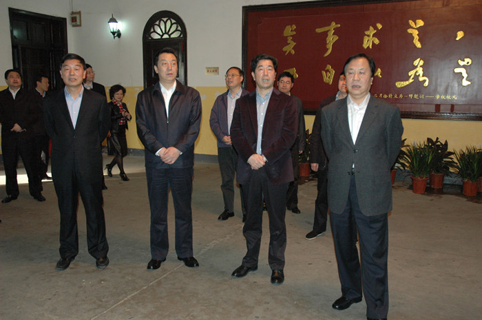 10月30日下午,国务院副秘书长、国管局局长焦焕成,中共中央办公厅副主任张建平一行来我院视察并参观了城南书院校区青年毛泽东纪念馆。省委常委、常务副省长于来山,省委常委、长沙市委书记陈润儿,长沙市市长张剑飞,省直部门、市直部门领导,天心区委、区政府领导陪同视察。我院领导彭小奇、刘鸿翔、刘宇、朱道弘以及党政办、宣传部、青年毛泽东纪念馆负责人参与接待。