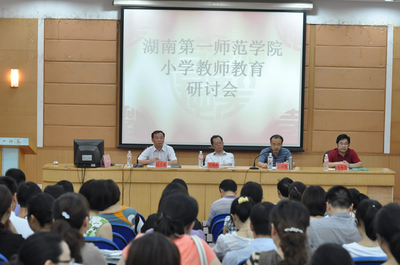 22日上午8点半培训研讨会在城南书院校区报告厅正式开始。会议由刘志敏副院长主持,院长彭小奇、副书记肖湘愚、纪委书记阳柏苏、学生工作处处长何文、人事处处长杨高全、教务处处长陈梦稀等领导莅临大会。省教育厅葛建中副厅长、上海师范大学教育学院常务副院长惠中教授和首都师范大学石鸥教授分别作了“湖南省基础教育现状、发展与师范教育改革”、“我国教师教育的制度创新与小学教师教育的发展”、“小学教师教育者的‘看家本领’”等学术主题报告。