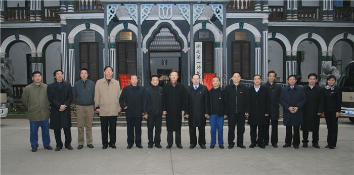 杨部长一边兴致勃勃地参观了我院城南书院校区青年毛泽东纪念馆,一边认真听取讲解员的精彩讲解。我院院领导詹小平、彭小奇、肖湘愚、刘鸿翔、李学全、刘志敏、李克勤、阳柏苏、刘宇、朱道弘热情接待了来访领导,并向杨部长一行详细介绍我院的办学情况和发展。最后,杨部长欣然为我院题词——“湖南第一师范学校改变了中国历史进程”,并在校门前与院领导合影留念。