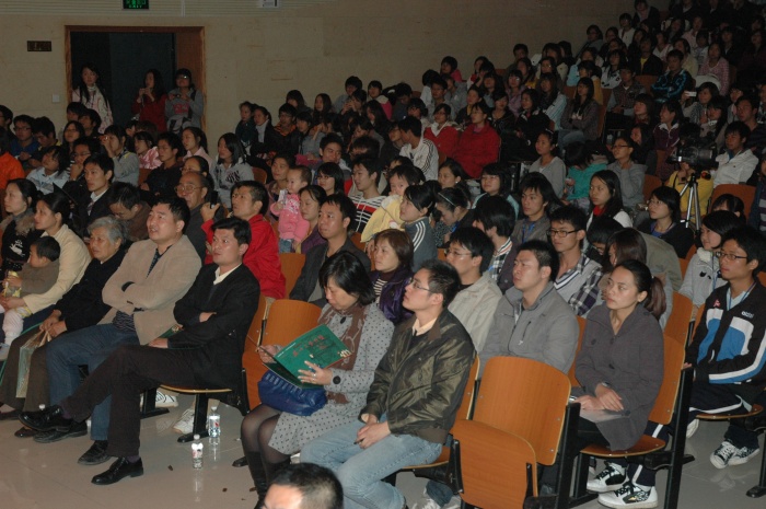 10月28日晚7点,应院团委的邀请,高雅艺术进校园之原创现代花鼓戏《五十二家别墅》我院东方红校区科技楼演播厅精彩上演,拉开了我院2010年校园文化艺术节的序幕。我院副院长李学全,院党委宣传部部长陈志武,学生工作处处长何文,院团委书记任晓晴、副书记罗祥云以及各系部团总支书记、老师代表、学生代表400余名一同观看了演出。湖南艺术职业学院副院长周文清、教务处副处长汤涛,湖南省星河演出有限公司总经理李爱军等嘉宾也应邀出席。