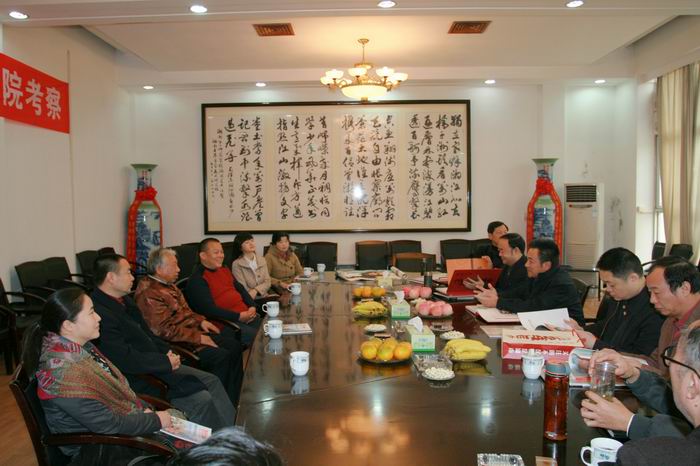 10月27日,著名国画家欧阳笃材先生在湖南省柏乐文化传播有限公司董事长余岁柏先生、总经理刘红娟女士的陪同下,来我院考察并洽谈书画捐赠事宜。院领导詹小平、肖湘愚、刘鸿翔、刘志敏、李克勤、刘宇、原副校长孙海林和党政办、美术系负责人予以热情接待。