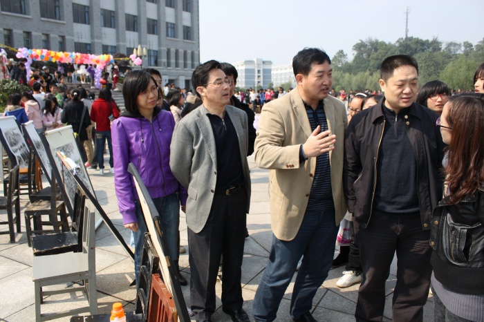 我院第六届青年学习节于10月18日正式拉开序幕,将历时一个月。本届青年学习节旨在深入发掘青年学生的学习动力,全面激发青年学生的学习兴趣,营造良好的学习氛围,进一步推动教育教学的改革步伐。为此,各系部学生围绕青年学习节的主题,充分发掘系部特色,并逐一加以展示。10月28日下午,我院美术系学生在东方红校区图书馆前坪举行了大型书画展,取得圆满成功。