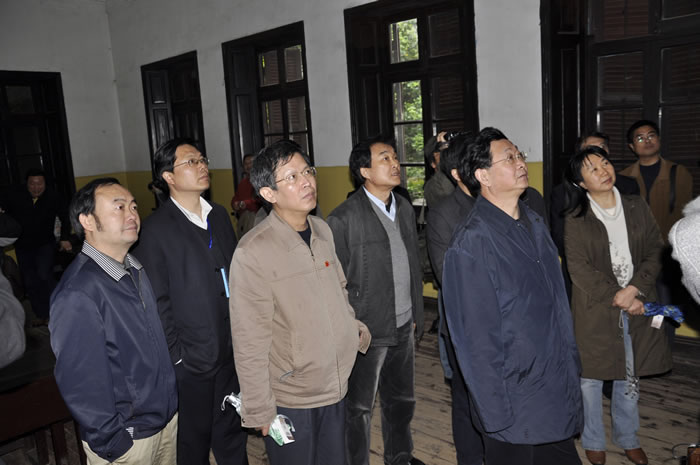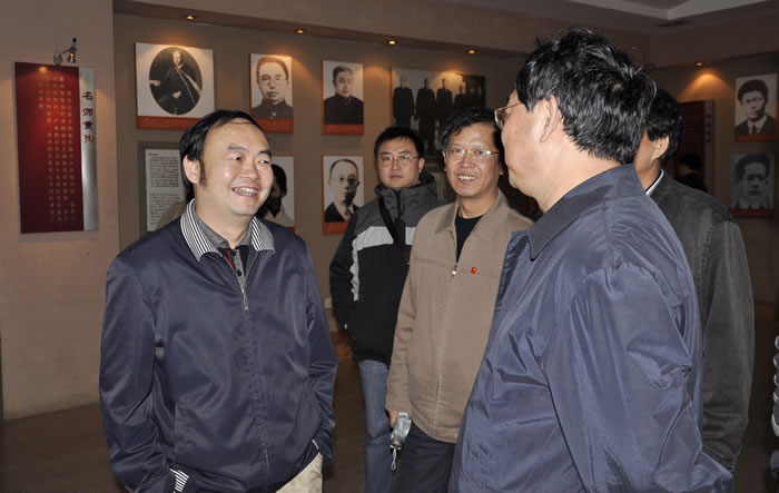 张健书记一行参观了我院青年毛泽东纪念馆,详细地了解了主席当年在我院的生活、学习以及担任一师附小主事期间的工作情况。毛泽东同志曾在第一师范求学、工作达八个春秋,并在此从事中国共产党的创建等一系列革命活动,实现了由青年学生到职业革命家的转变、由激进的民主主义者到伟大的马克思主义者的转变。作家们每到一处都要用镜头记录下校园内的一草一木,详细询问每一个细节,用文字记录下主席当年学习生活的一点一滴。