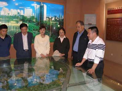 张保庆(右二)在听取新校区建设情况的汇报