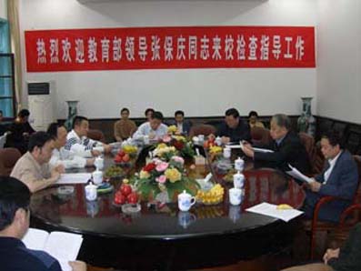 4月30日,教育部原党组副书记、副部长张保庆来我校考察调研。陪同张保庆同志前来考察调研的有省教育厅厅长张放平、副厅长陈元魁等。我校党委书记鄢东洋主持了座谈会,校长詹小平进行了汇报,参加座谈会、陪同考察调研的还有校领导王湘、刘鸿翔、李学全和我校有关职能部门、教学系部的负责人