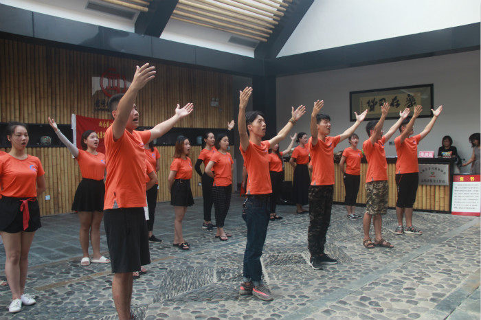 在当地的土家族历史博物馆,大学生们为工作人员和参观博物馆的群众表演了由湘剧大师徐绍清创作的现代湘剧高腔《沁园春·雪》。