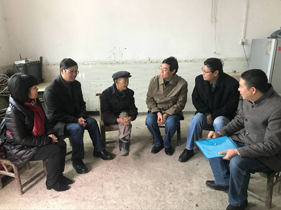 副校长江正云率教务处处长李茂平、文学与新闻传播学院党总支书记刘澍心、副院长邓姿慰问了结对帮扶建卡贫困户左银球。左银球患眼疾,老伴因病去世,儿子患先天性心脏病,家庭因病致贫。江正云跟他们坐在一起进行面对面交谈,询问左银球及其儿子的身体状况,送上扶贫慰问金,鼓励他们积极面对困难,改善现在家庭状况。