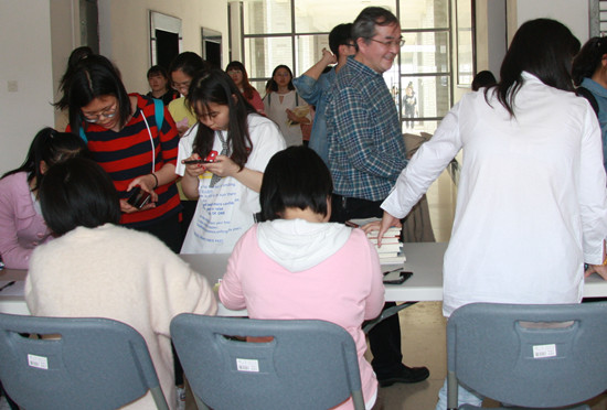 4月10日,图书馆举办了“书海寻宝”图书检索与查找趣味大赛。副校长曹兴到活动现场观摩指导。