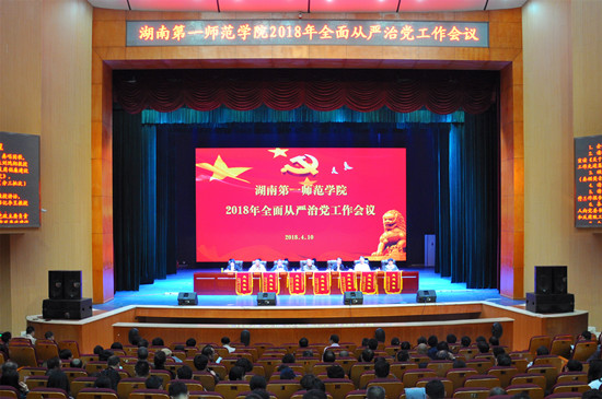 4月10日下午,我校2018年全面从严治党工作会议在东方红校区田汉剧场召开。全体在家校领导、全校副科级以上实职干部、全体教职工党员、学生党员代表、离退休党总支书记、纪检委员,各级人大代表、政协委员,各民主党派主委参加会议。会议由校党委副书记刘志敏主持。