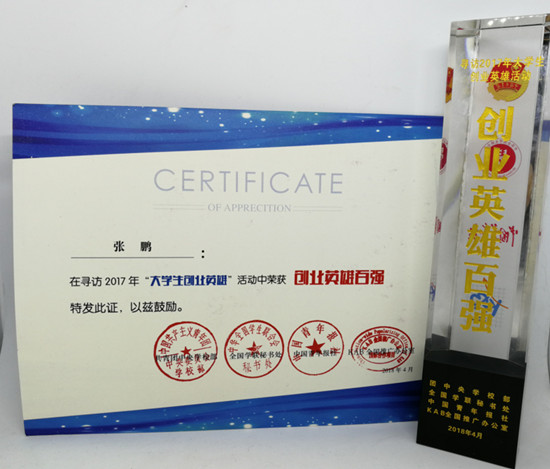 我校2017届毕业生张鹏入选2017年全国大学生创业英雄100强-87978797威尼斯
