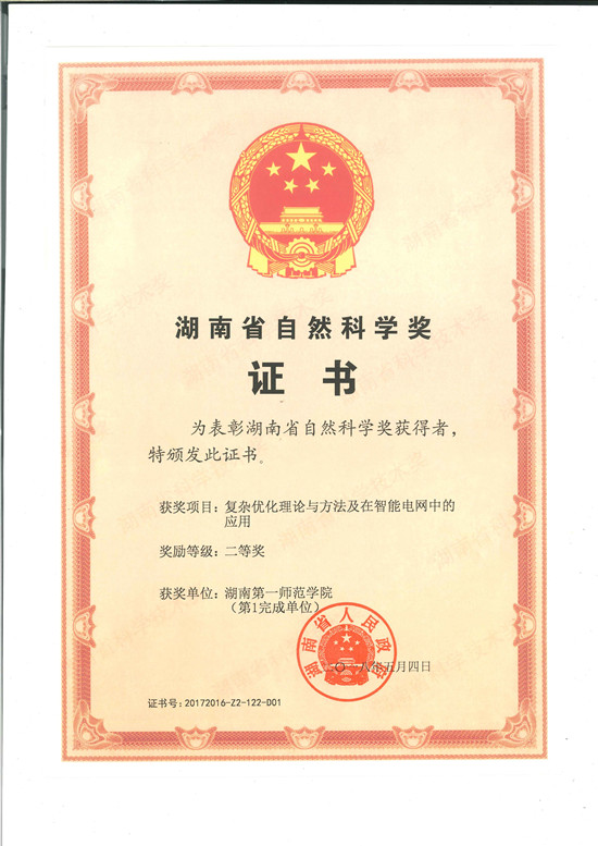 我校荣获2017年度湖南省自然科学奖二等奖-87978797威尼斯