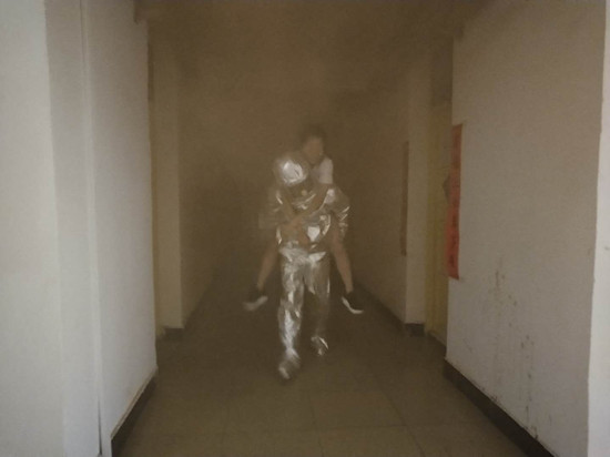 消防官兵解救高层受困学生