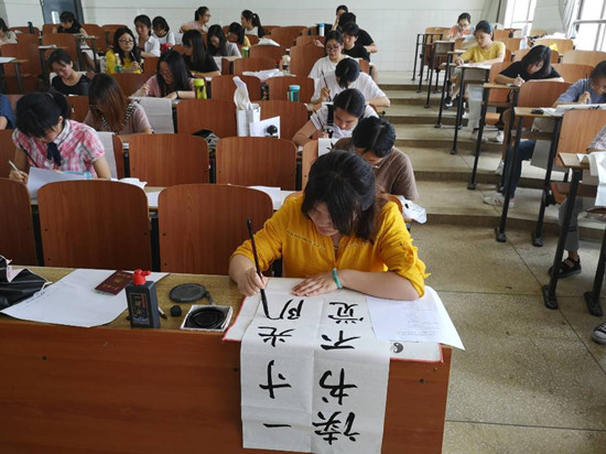 为夯实师范生的教学基本功,提升师范生的从教能力,5月12日至20日,利用中午、晚上和周末的课余时间,我校组织开展了2018年上半年师范生教师职业技能考核。各学院对此次考核工作高度重视,考前成立了考试工作领导小组,认真落实各项前期准备和组考工作。考试期间,教务处及各学院负责人到现场巡视指导,各项考核工作井然有序。