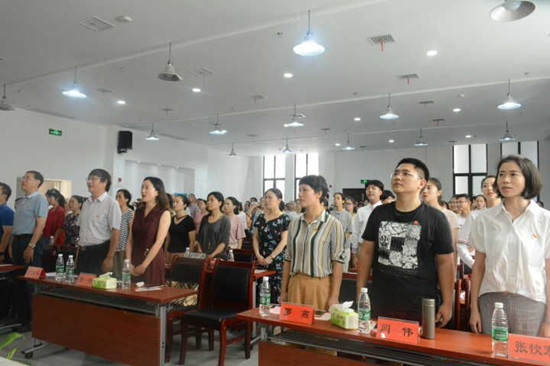 活动过程中,党员们重温入党誓词,面对鲜红的党旗,庄严宣誓,再一次接受党性的洗礼,通过神圣的仪式感鞭策自己不忘初心,砥砺前行。