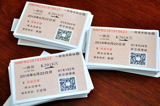 “毕业专列”是由商学院和商学院毕业生创办的1903咖啡馆联合为学院2018届485位毕业生打造的毕业季活动。毕业生凭一张专门定制的“由湖南一师开往未来”的火车票,就能在1903咖啡馆免费兑换一杯特调咖啡,并且每个咖啡杯上都绘有他们熟悉的大学老师的手绘头像和一句来自老师的祝福语。
