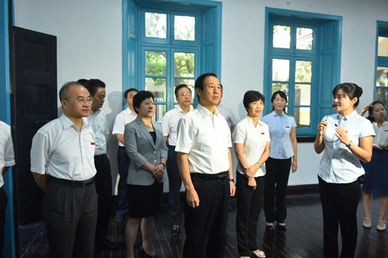 许达哲一行来到我校城南书院校区,走进毛泽东与第一师范纪念馆和附小主事室,参观了毛泽东在此求学任教时的八班教室、寝室、阅报室、办公室等,了解了我校的历史沿革、办学理念、办学特色等情况。
