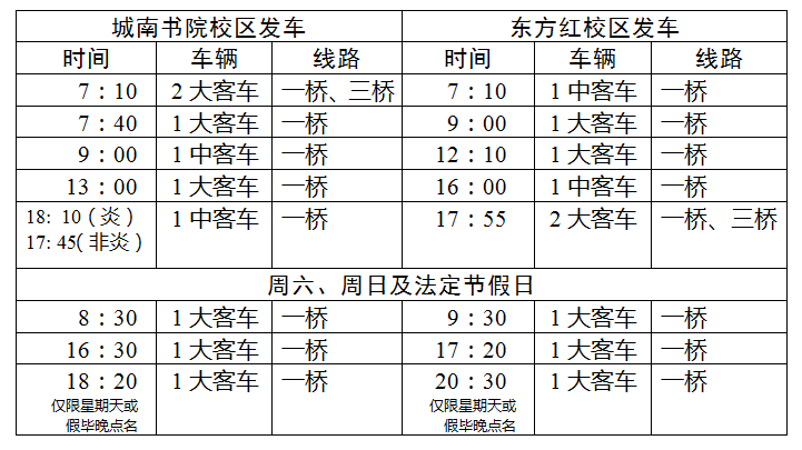 根据学校《教职工考勤管理办法》(湘一师校字〔2014〕75号)对劳动纪律管理的要求,结合在党的群众路线教育实践活动中广大教职员工提出的意见和建议,报学校同意,决定从2014年9月15日(星期一)起,对学校班车运行进行重大调整,请各单位务必将调整情况告知本单位全体教职员工。具体调整如下: