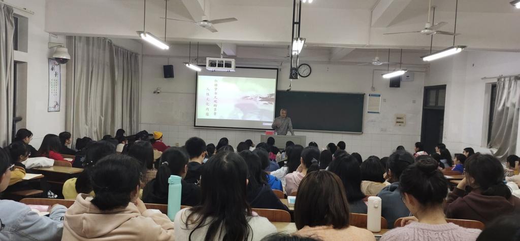 11月7日晚,中南大学升华学者、文学与新闻传播学院博士生导师王攸欣教授在东方红校区怀中南202教室为我校师生作了题为《<红楼梦>女儿观的多重人性及文化内蕴》的讲座,师生代表共160余人参与。讲座由我校文学与新闻传播学院院长龙永干主持,